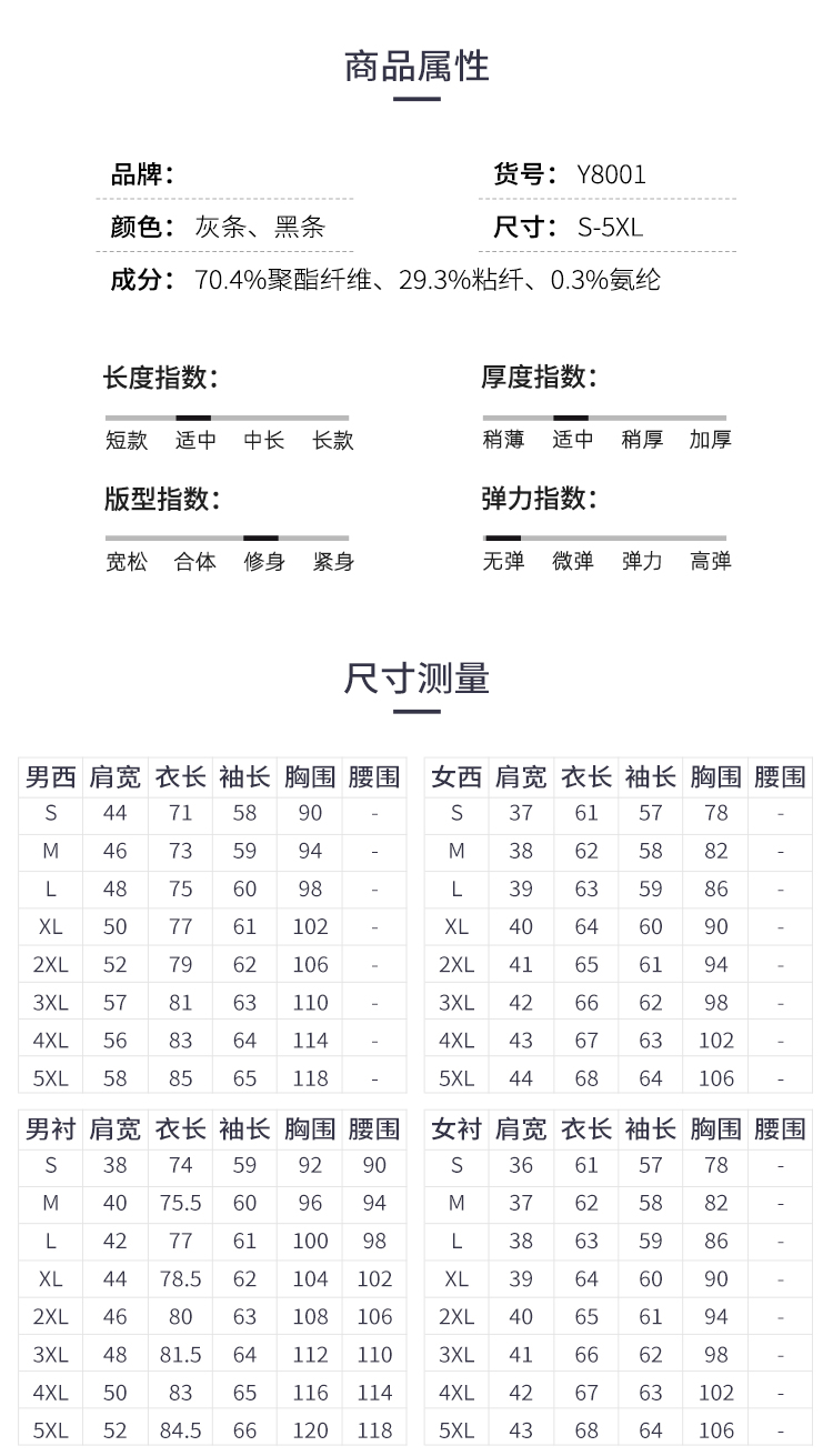 : 70.4%聚酯纤维29.3%粘纤0.3%氨纶