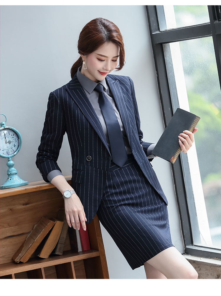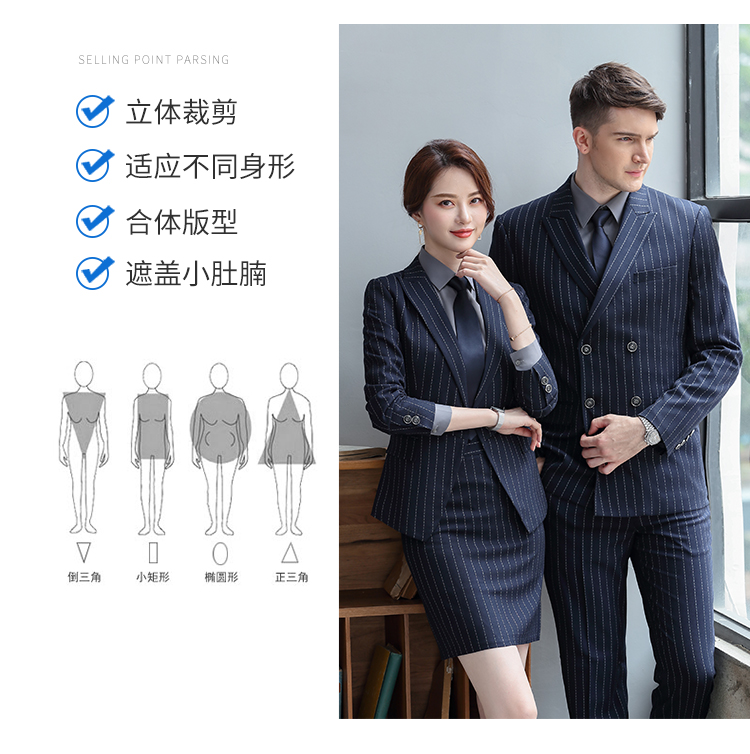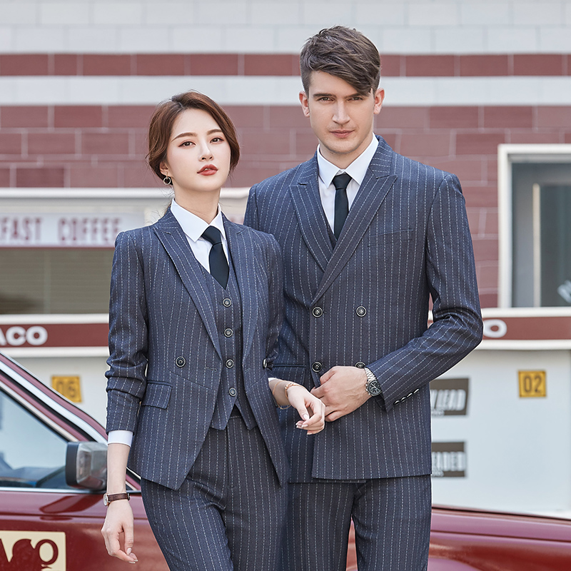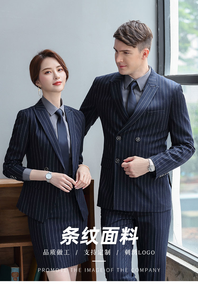Y8002款 宽条纹款男女修身同款职业装工作服商务西服定做企业西装定制