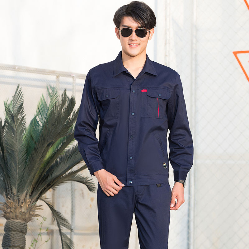 SYX206 藏蓝工作服套装夏装长袖工装定制汽修车间厂服耐磨工地电焊工劳保服
