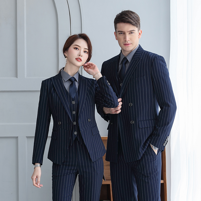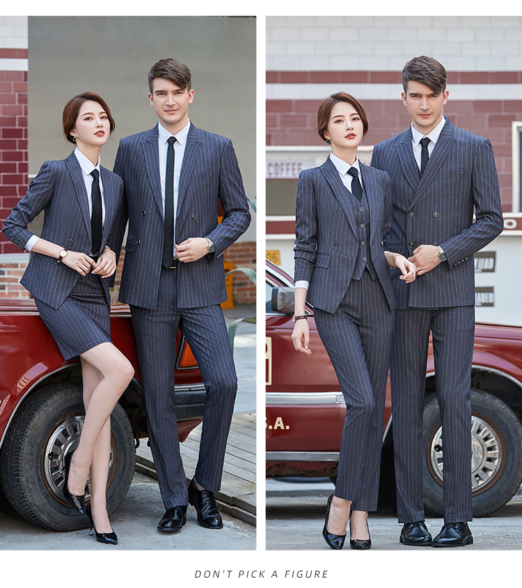 Y8002款 宽条纹款男女修身同款职业装工作服商务西服定做企业西装定制