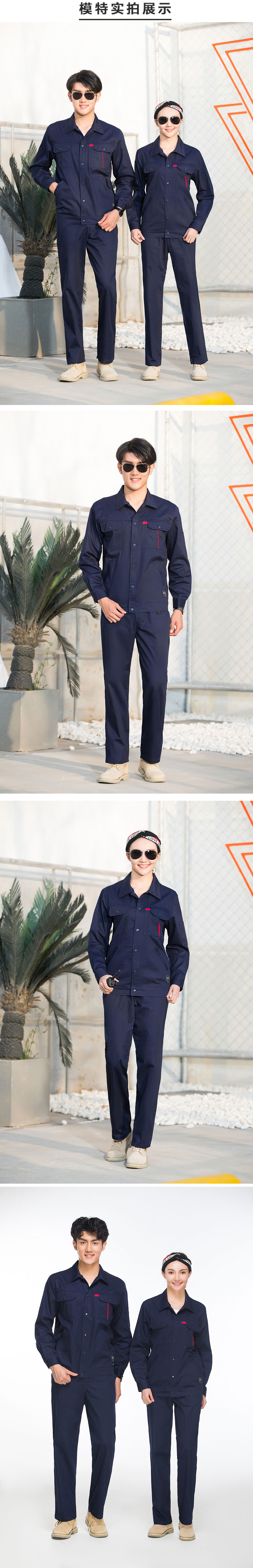 SYX206 藏蓝工作服套装夏装长袖工装定制汽修车间厂服耐磨工地电焊工劳保服